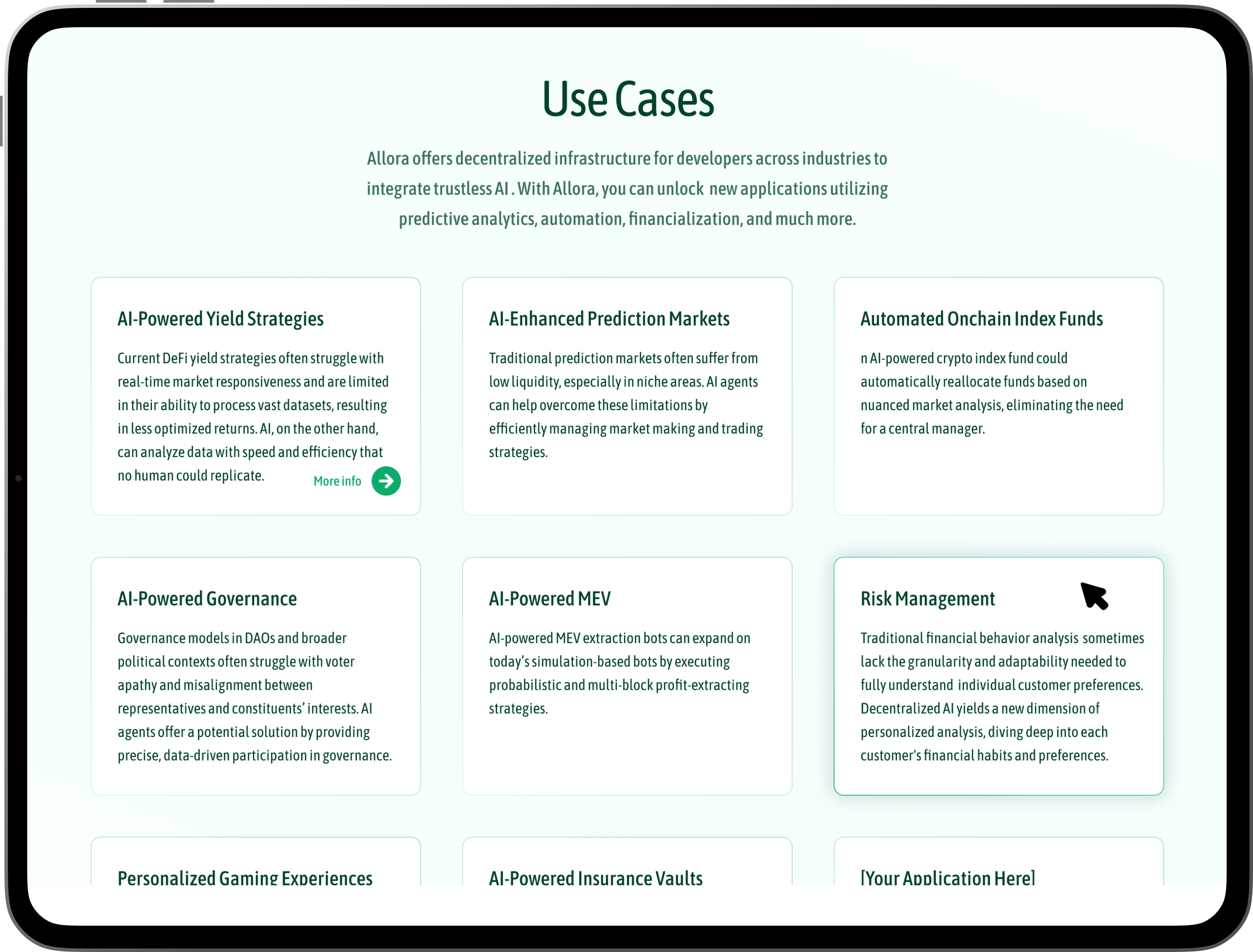 The challenge was too create a clear, engaging, and educational online presence that effectively communicates the complex technology in an accessible way, highlights its advantages, and builds excitement around the platform. Potential users may be unfamiliar with the benefits and intricacies of decentralized AI networks and self-teaching agents.