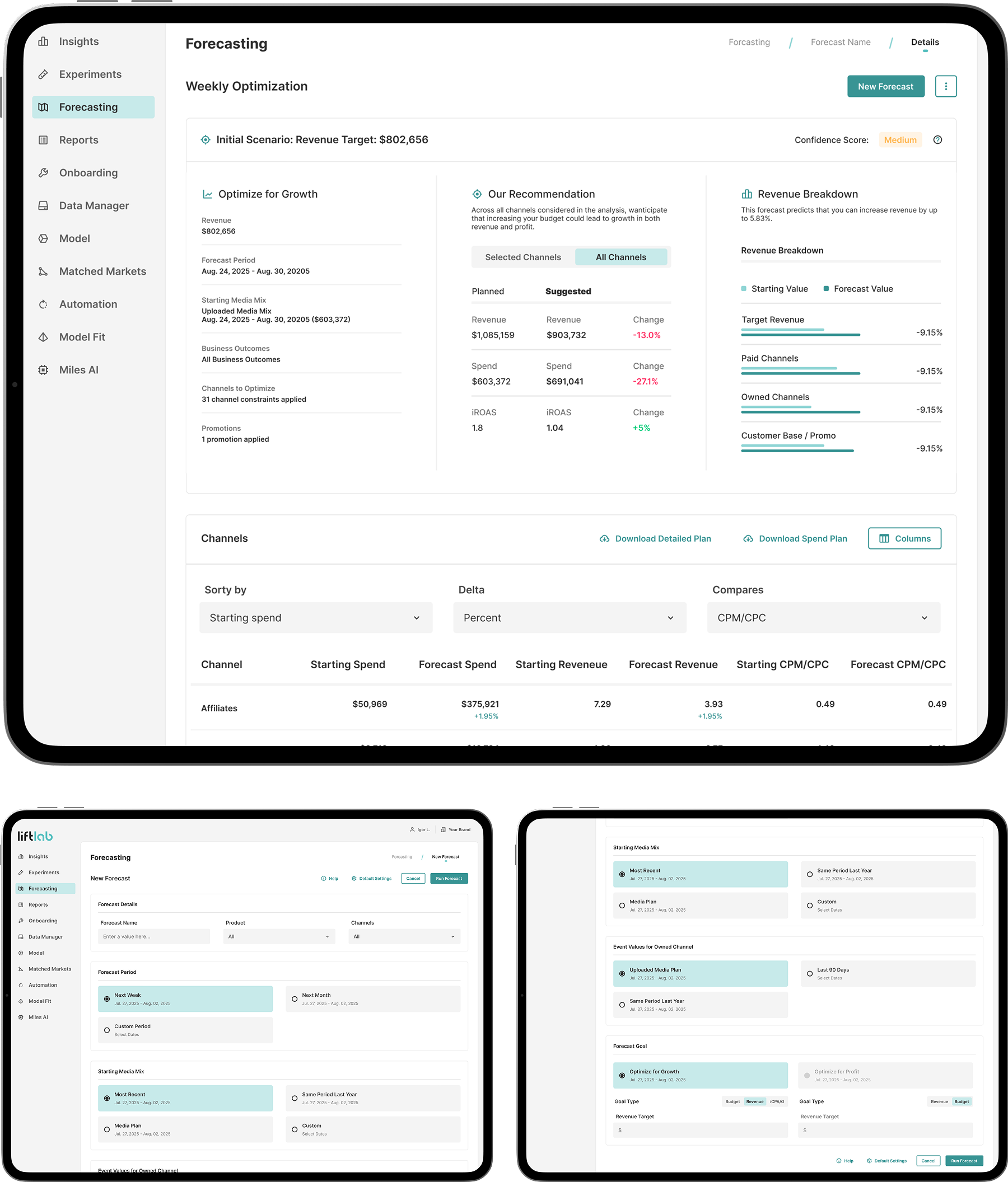 Marketing leaders needed to confidently answer: "If I allocate X budget to Channel Y, what is the predictable revenue output 6 months from now?" The existing tool failed because it hid the underlying assumptions. Users didn't trust the automated forecast unless they could see and modify the core variables (like Conversion Rates and Channel Costs) that drove the predictions. They needed a "What-If" engine, not just a single forecast output.