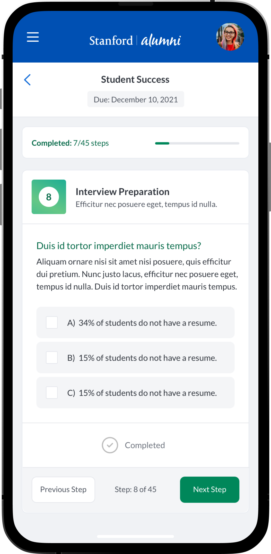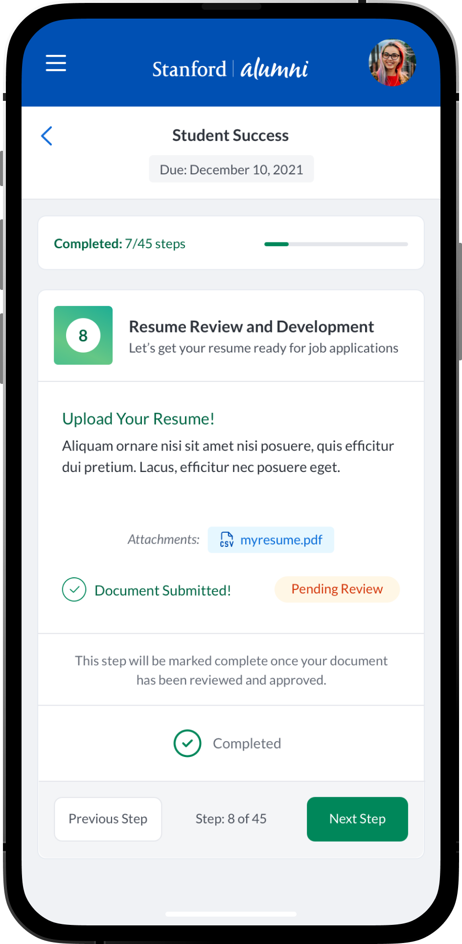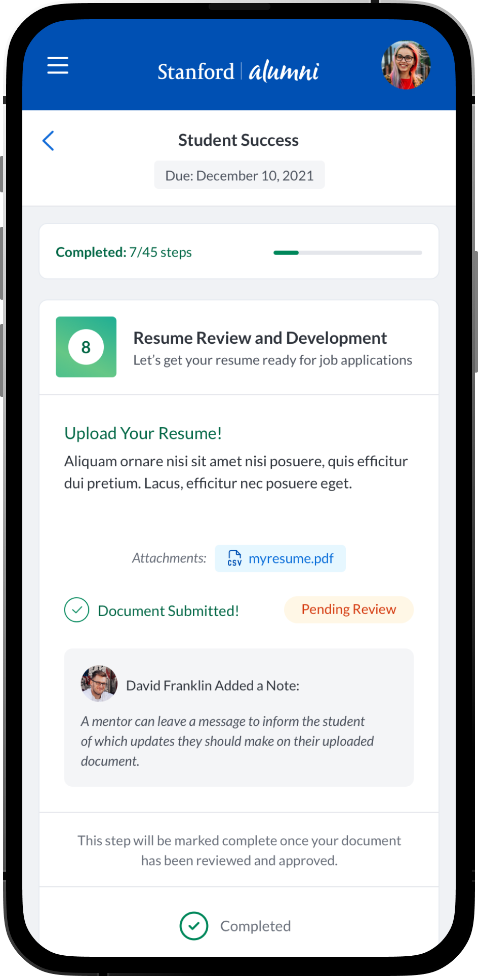 An intuitive task management system where students, mentees, mentors and alumni can view and manage academic, career-related, and personal development tasks. Integration with academic calendars, in-app chat integrations and conversation threads. Alumni could have relevant post-graduation tasks. Additional features such as: Resume review and feedback, Meeting Scheduling and Management, Interactive Quiz’s and Assessments, Mentor Discovery and Connections, Graduation Prep, Career Exploration and Preparation.